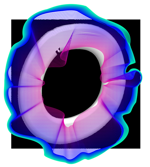 Initials of the letters N, O, Ž for the student project Mint Alphabet. The letters are colorfully created using various techniques, such as 3D tracing, lines, brush strokes, and more.